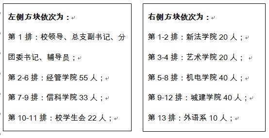 二、要求: 1. 各单位于18:20前入场完毕,并按指定位置就座。 2. 请自觉遵守和维护会场纪律。