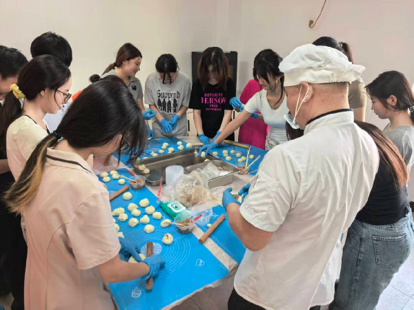 活动尾声,志愿者们在水域社区门口再次合影。这张照片记录下的,不仅是同学们服务社区后满足的笑容,更是年轻一代与社区长者之间情感交融的生动见证。此次“美好时光,技韵水域”活动,不仅让同学们在实践中学习了生活技能,体验了创造的乐趣,更重要的是,通过面点的香气与手绘的色彩,传递了深深的尊老之情与浓浓的社区暖意。