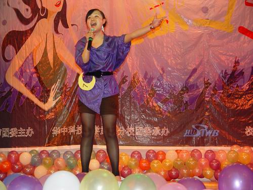 18位选手从海选中脱颖而出,在舞台上尽情的施展歌喉。随着渐渐暗淡的灯光,缓缓响起的音乐,比赛拉开帷幕,武汉软件工程职业学院的程洋以其厚重雄浑的嗓音,为观众带来了一首《Everyone is NO.1》,其独特的嗓音、动情的演唱,赢得全场观众的阵阵喝彩;16岁的青涩小女生王心雨,以优美的歌喉、不凡的唱功,高歌了一曲——《a love BeforeTime》;最让人震撼的莫过于七号选手鲁婷为大家带来的《青藏高原》了,大家一听歌名不禁尖叫鼓掌,她不负众望,成功地把高音飙了上去,再度使现场沸腾;跳跃的声音,活泼的舞蹈,强劲的节奏,素有我校“舞台快乐精灵”之称的周茜出场了,她的一首《只爱高跟鞋》,把快乐传递给了现场每个人;来自长江职业学院的张绍刚,一首带有民族色彩的《神龙架梆鼓》,以其浑厚的音质,轻快愉悦地把大家带入了那个如仙境般的地方——神龙架;江汉大学的董旭以高亢的男高音,精湛的演唱技巧,把一曲《祖国,我慈祥的母亲》唱得深情款款、浑厚奔放,令人赞不绝口,回味无穷。