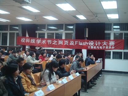 12月16日晚,由校团委主办,计算机与电子系团学联承办的科技学术节之网页与Flash设计大赛决赛在11—102隆重举行,本次大赛的主题是:创文明城市,构和谐校园。