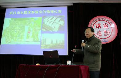 叶院士从华中科技大学新建的三个国家级的科学研究平台讲起,阐述了国家实验室应承载的责任与使命。然后具体就信息科技的发展趋势、国家对信息科技的安排、国家光电实验室的进展以及中国光谷的简况做了说明,重点讲述了国家光电实验室为社会、企业所做的一系列贡献,例如,九连敦古编钟的激光焊接,具有自主知识产权的新一代多功能高清光盘机NVD等。在谈到信息科技发展时,叶朝辉教授对比了IBM和我国计算机的浮点运算,中国在自主研究方面有所落后,他强调应不断努力,跟上信息的脚步。