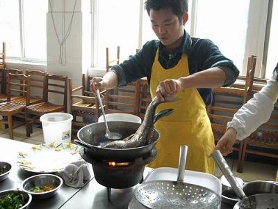 你相信清炒土豆丝也能被炒出各种风味来吗?接下来的在西三食堂进行的厨艺比拼让你不得不信服。参赛的八十多名同学扎起围裙,拿起铁勺,切菜、煸炒忙的不亦乐乎。在以“鱼”为主题的决赛中,杨美玲同学的佳肴征服评委,获得冠军。