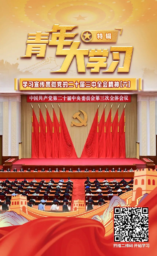 党的二十届三中全会审议通过的《中共中央关于进一步全面深化改革、推进中国式现代化的决定》,是新时代新征程上推动全面深化改革向广度和深度进军的总动员、总部署。站在新的历史起点上,广大青年积极投身中国式现代化建设,在经济发展、科技创新、新型工业化、乡村振兴、民主法治、精神文明建设、文教体育、绿色发展、社会服务、卫国戍边、统一战线、对外交流等各领域各方面工作中争当排头兵和生力军,展现青春的朝气锐气。