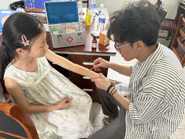教室里,语文、数学辅导扎实贴心。队员们蹲在课桌旁一遍遍讲解错题,用卡通贴纸鼓励进步的孩子,让知识吸收轻松温暖。音乐课上更显热闹,志愿者老师抱着吉他现场演奏,指尖流淌的旋律里,孩子们跟着拍手学唱,连平日里腼腆的小家伙也张着嘴巴哼起调子,歌声与乐器声交织成最动人的课堂。傍晚的校园另有热闹。队员们利用休息时间拿起画笔在斑驳墙壁上蘸色忙碌,让教学楼焕新颜,为孩子们营造更温馨的学习环境。义艺支教队特别策划“守护ta计划”性教育专题课程。队员把知识编成小故事,分性别、分学段授课,语气格外温柔。高年级课堂上,他们解答成长困惑,还为女生递上爱心企业赞助的卫生巾,轻声说是“成长的礼物”;低年级孩子则在绘本游戏里,懵懂懂得“保护自己”。