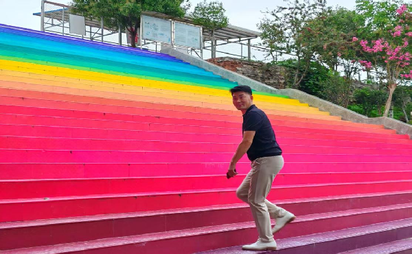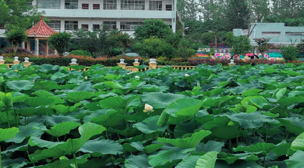 抵达当天,胡营中学校方为支教团队精心安排了住宿与餐饮,并组织专人协助整理行李,让师生们感受到“家一般”的温暖。随后,校长亲自担任向导,带领团队漫步校园,逐一介绍独具特色的校园景观与教育理念。校园内,一池荷花亭亭玉立,校长结合周敦颐《爱莲说》中“出淤泥而不染,濯清涟而不妖”的典故,寄语学生:“希望孩子们能在平凡的环境中坚守初心,通过努力学习改变命运。”这一“莲文化”育人理念,让支教师生深刻感受到学校对品德教育的重视。此外,校长重点介绍了“彩虹阶梯”与“视频通话亭”的设计初衷。色彩斑斓的阶梯不仅是校园美学象征,更寓意着学生逐梦之路的多元可能;而禁止手机入校的前提下,学校特设的视频通话亭成为孩子们与父母沟通的桥梁,既保障学习纪律,又满足情感需求。这些细节展现胡营中学“以人为本”的教育智慧。