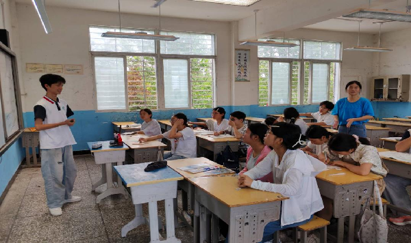 在几天实践中,支教团队逐渐摸索出“兴趣+考纲”的教学模式:将课本知识与学生热衷的动漫、游戏元素结合,设计趣味习题;通过“击鼓传花”复习知识点,用“数字炸弹”练习数学计算。课堂上,学生主动记笔记、举手发言;课后,师生围坐分享趣事,教育在欢笑中生根发芽。
