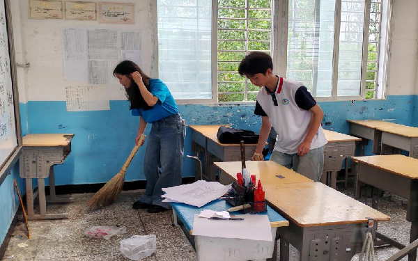 清晨,12名支教同学怀着复杂的心情走向各自负责的班级。面对“学生是否调皮难管”“能否赢得喜爱”等担忧,他们深吸一口气,带着精心准备的教案走进教室。简单的自我介绍后,一场特别的“劳动教育课”拉开帷幕——师生们共同打扫教室、整理桌椅,在协作中拉近距离。汗水与笑声交织,让初次见面的陌生感悄然消散。