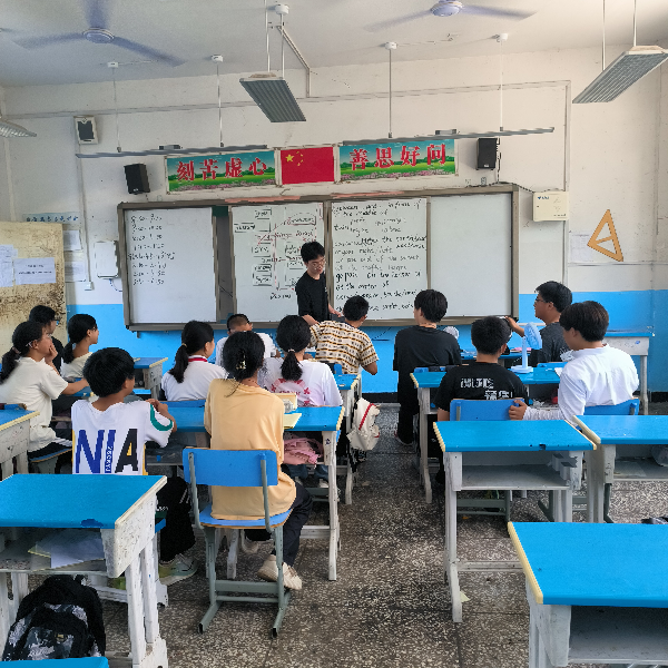 7月3日至7月6日,武昌首义学院外国语与教育学院胡营中学支教活动进入深化阶段。团队在持续开展英语特色教学的同时,通过心理关怀、梦想激励、个性化辅导等方式,与300余名学生建立起深厚的情感联结。 “老师,这是我心中的你!”学生李婷将彩绘的卡通画像送给支教老师陈囿安。活动中,团队发现许多学生通过绘画传递情感,遂增设自由创作课。 “这些画比任何荣誉证书都珍贵。”支教队员动情地说。 针对学生基础差异,团队实施“分层教学法”:“我们特别设计了阶梯式晨读计划,基础薄弱的学生从音标开始,中等水平的学生练习单词拼读,基础好的学生则进行课文朗读。”支教队员李章琦介绍道。这种分层教学的方法让每个学生都能在适合自己的节奏中取得进步。“原来long和wrong发音不一样!”曾因发音不准被嘲笑的张强,在老师指导下终于突破瓶颈。 “大学图书馆有多大?”“高中生也要住校吗?”在“畅想未来”主题班会上,支教老师用照片、视频展示高中与大学生活,点燃孩子们对未来的憧憬。课后,老师单独与学生们谈心,累计为23名留守儿童提供一对一心理辅导。 课堂上,支教老师们精心设计的互动教学让英语课变得生动有趣。"以前我最怕上英语课,现在每天都盼着上英语课!"学生王明兴奋地说。支教队员宋双燕独创的"英语情景剧场"让学生们在角色扮演中自然习得语言,而赵文静老师的"单词大冒险"游戏则让枯燥的词汇记忆变成了欢乐的竞赛。课间时分,总能看到老师们被学生团团围住,或是解答问题,或是分享趣事。 为激励学生,支教老师还自费购买300余份零食作为课堂奖励。7月5日英语活动课后,表现优异的同学获得了奖励,后排学生突然喊:“下次我们也要拿奖!”这种“奖励经济学”还延伸至矛盾调解——发生争执的两名学生因合作完成口语任务,共同获得了分享一包饼干的机会。 截至目前,支教团队已累计授课60余课时,开展特色活动12场,一对一辅导学生百余人次。在最近的一次听写测试中,拿到满分的学生增加了15%。“这些进步不仅体现在分数上,更体现在孩子们自信的眼神和积极的学习态度上。”胡营中学朱主任评价道。