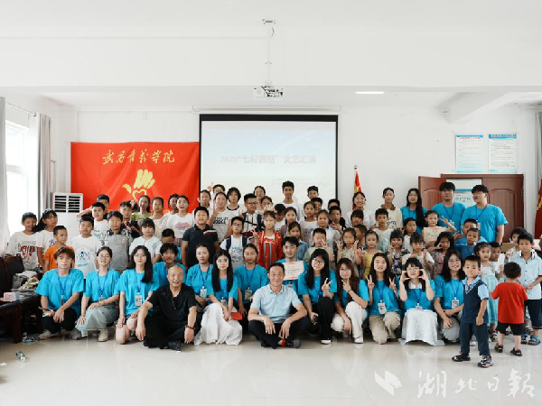 表演结束后,颁奖仪式如期举行。2025年“七彩假期”优秀学生奖与优秀团队奖相继揭晓,获奖学生与团队代表在热烈的掌声中上台领奖。武昌首义学院稻田志愿服务队指导老师吴老师在总结发言中表示,孩子们在舞台上自信绽放的模样,正是支教活动最珍贵的收获——两周里,孩子们从课堂上的羞涩低头到主动举手,从对艺术的懵懂无知到能站上舞台从容表演,这份成长便是支教活动最大的意义。