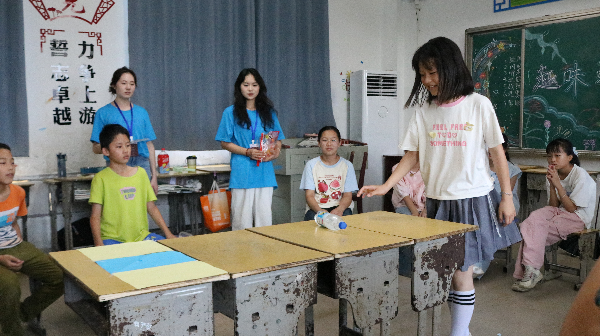下午的活动移至室内,支教队员们根据孩子们不同年龄段的认识特点和兴趣点,精心设计了不同的趣味项目,各年龄段的“定制快乐”轮番上演。