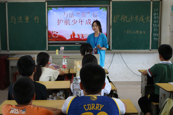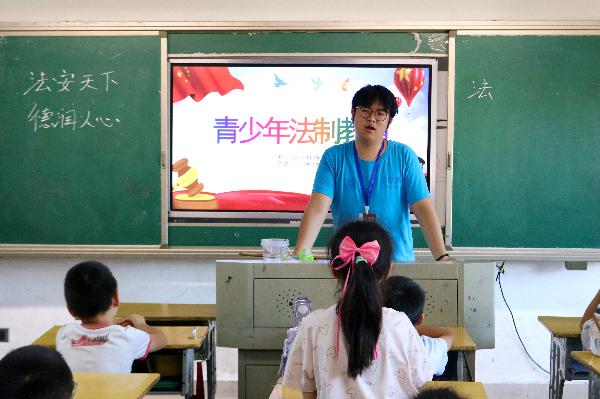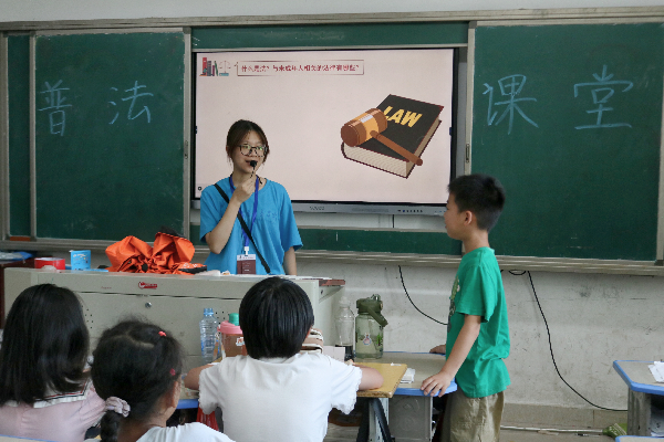 “故意损坏同学物品,这也是一种伤害!”7月18日,在湖北省黄冈市浠水县第八实验小学余堰校区的五年级课堂上,张景伟同学在课堂讨论后恍然大悟。近日,武昌首义学院青雨支教队在湖北省黄冈市浠水县第八实验小学余堰校开展系列法治教育活动,针对不同年级学生特点,分层开展“保护自己”“防校园欺凌”“与法‘童’行”主题课程,用贴近乡村儿童生活的互动形式,为140余名“爱心托管班”学生编织起一张法治 “防护网”。