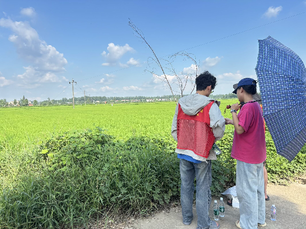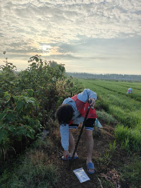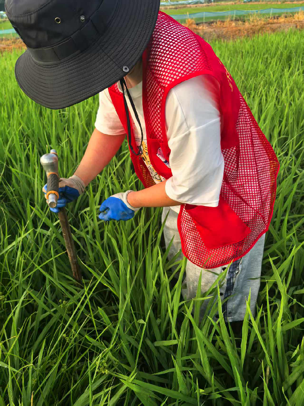 在充分了解基地情况后,实践团队随即进入田间开展土壤取样工作。带队老师彭老师现场指导成员们操作要领:根据不同地块的土壤特征确定采样点,使用专业工具按标准深度采集土壤样本,同时仔细记录每个采样点的位置、周边作物生长状况及土壤外观等信息。成员们分工协作,有的负责挖掘、采集样本,有的专注于封装标记填写采样记录表,确保每一份样本都能精准反映对应区域的土壤状况。田间地头,大家顶着夏日的炎热,有条不紊地完成了多个点位的采样工作,用严谨的态度践行着实践调研的初心。